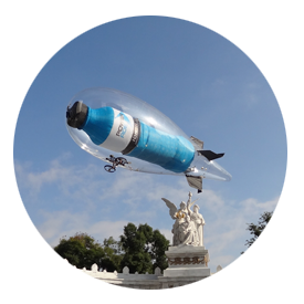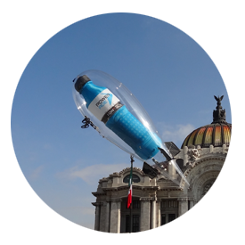 El dirigible, operado por radio control, es un excelente medio para impactar la mente del consumidor. Su versalidad y funcionalidad lo convierten en un medio para sobrevolar áreas exteriores, promocionando su marca en lo más alto. Además de ser operado con alta tecnología, es un medio original que respeta la cultura ambiental. Lleva tu marca a nuevos horizontes.